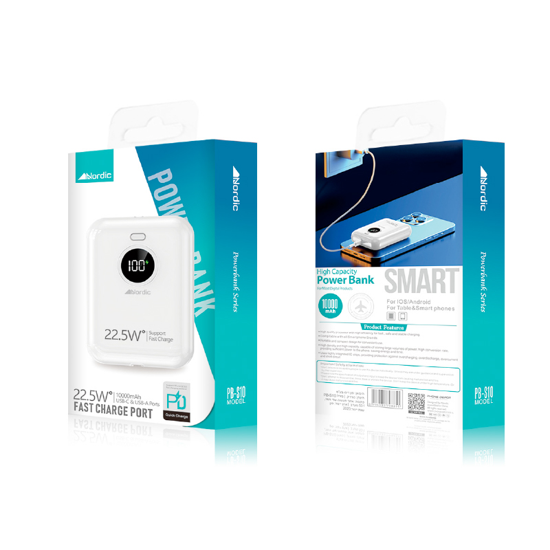 סוללת גיבוי PB-S10 10000mAh PD MINI – טעינה מהירה ונוחות ללא פשרות